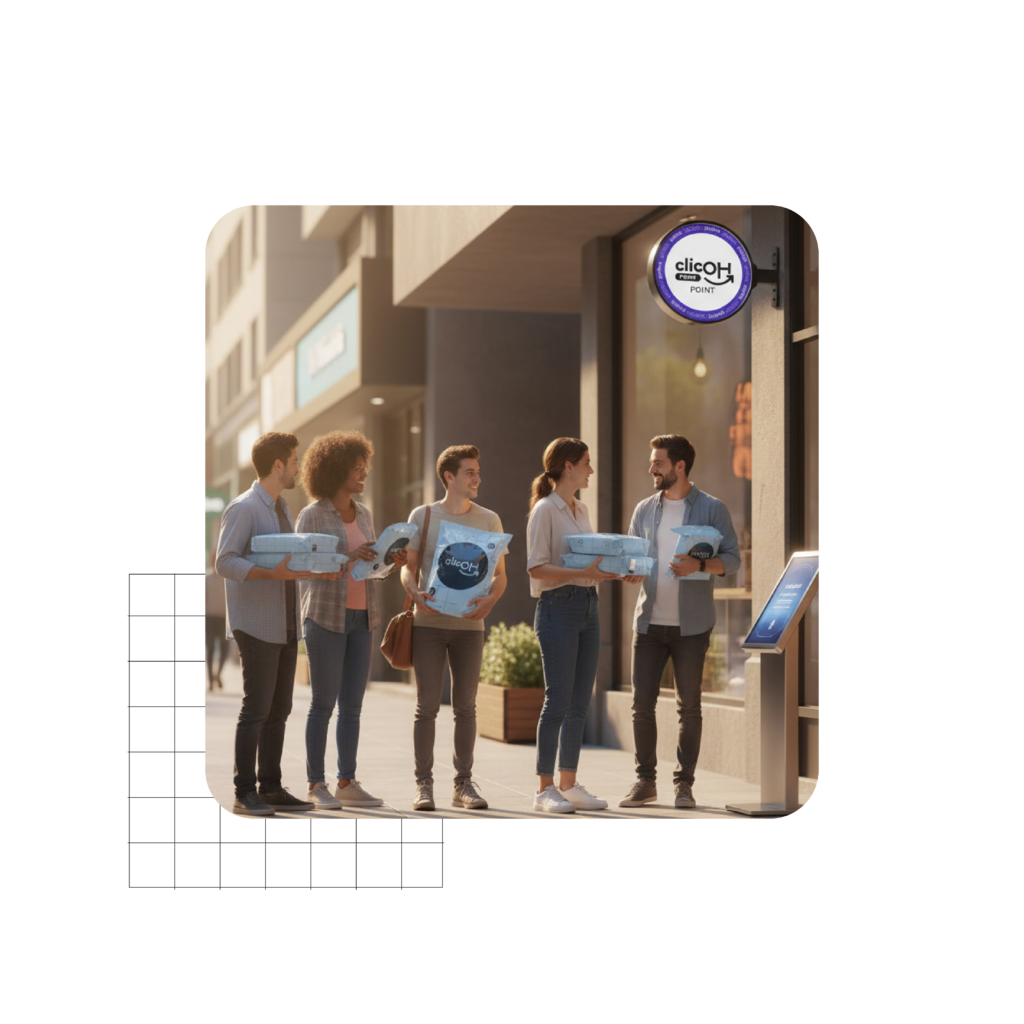 Los clicOH Points son aliados estratégicos (comercios, kioscos, estaciones) que reciben, almacenan, entregan y gestionan devoluciones de paquetes, con una eficiencia cercana al 100% en el primer intento.